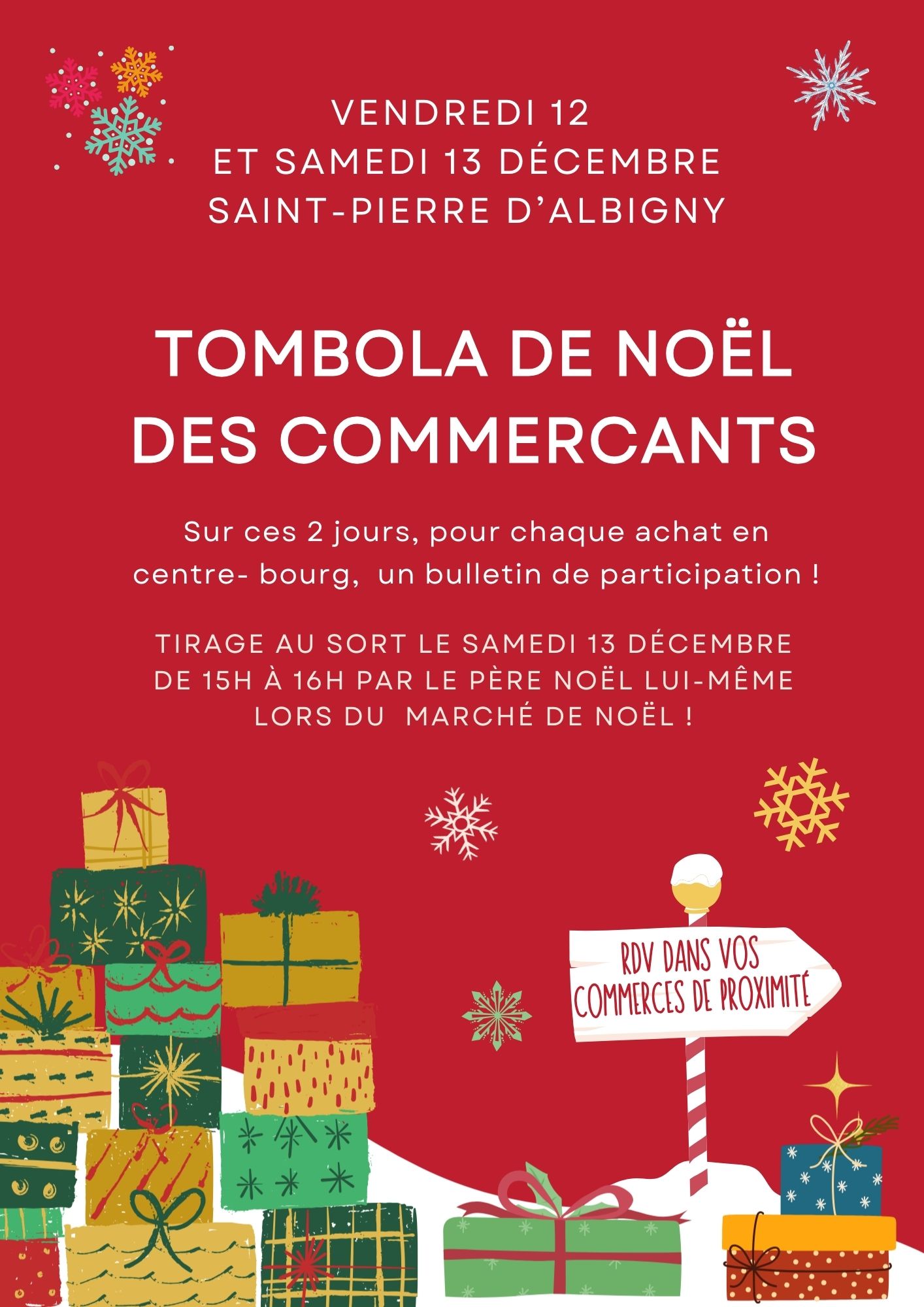 De belles surprises vous attendent avec la Tombola de Noël des commerçants ! Le vendredi 12 et le samedi 13 décembre, chaque achat auprès d'un commerce de centre-bourg vous donne droit à un bulletin de participation à la Tombola