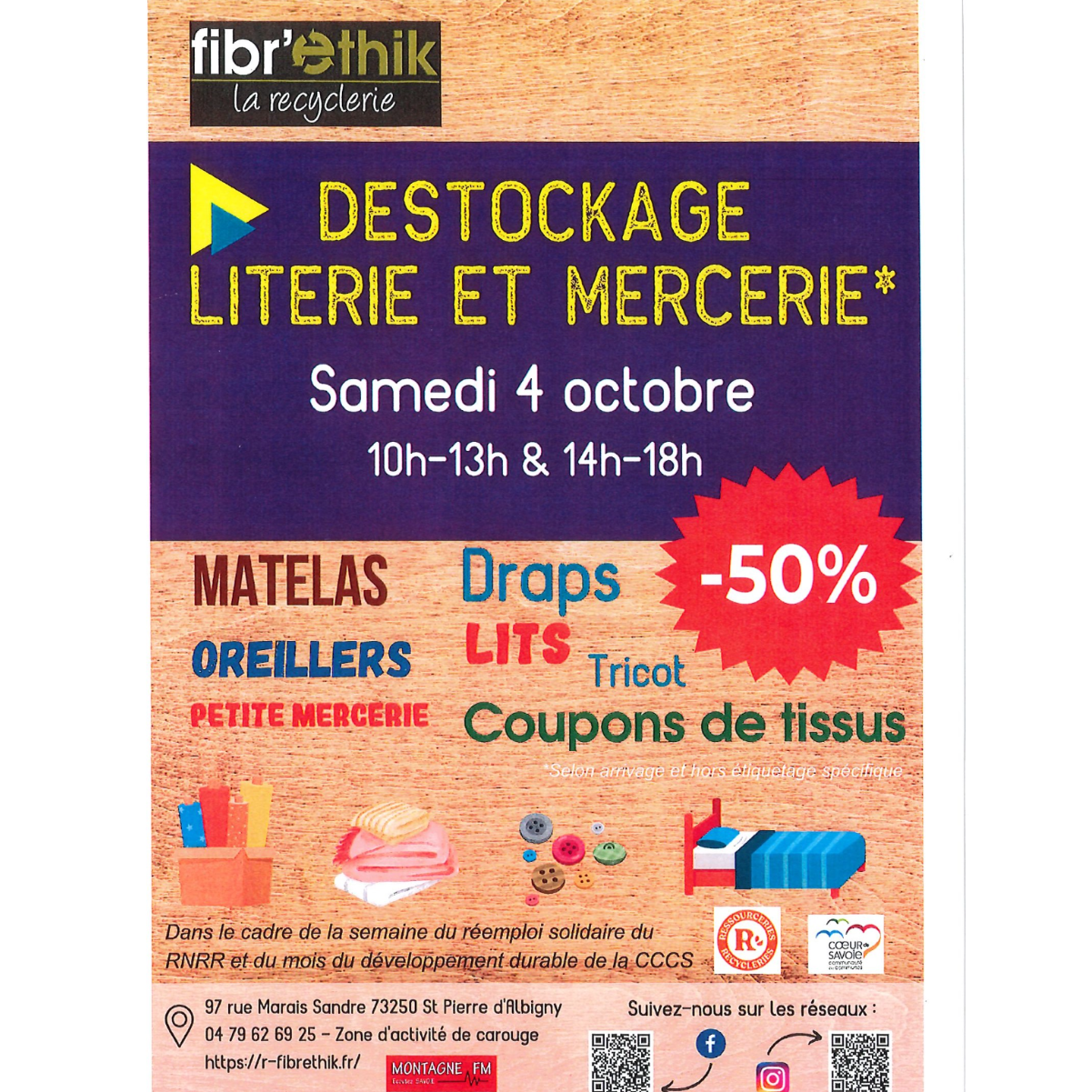 Rendez-vous le samedi 4 octobre pour une journée exceptionnelle de déstockage à la Recyclerie! Profitez de remises jusqu’à -50% sur une large sélection d’articles de literie et de mercerie.